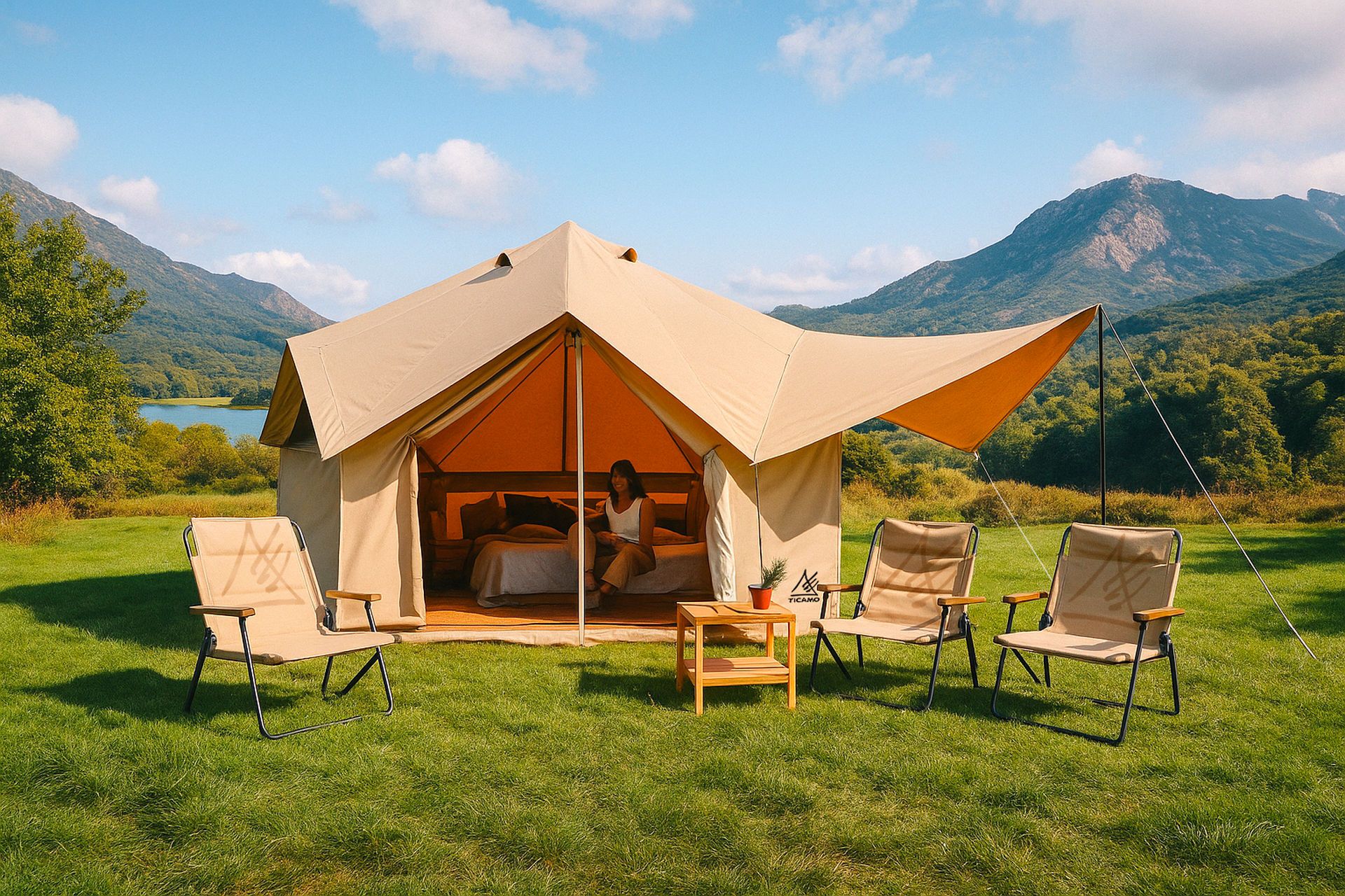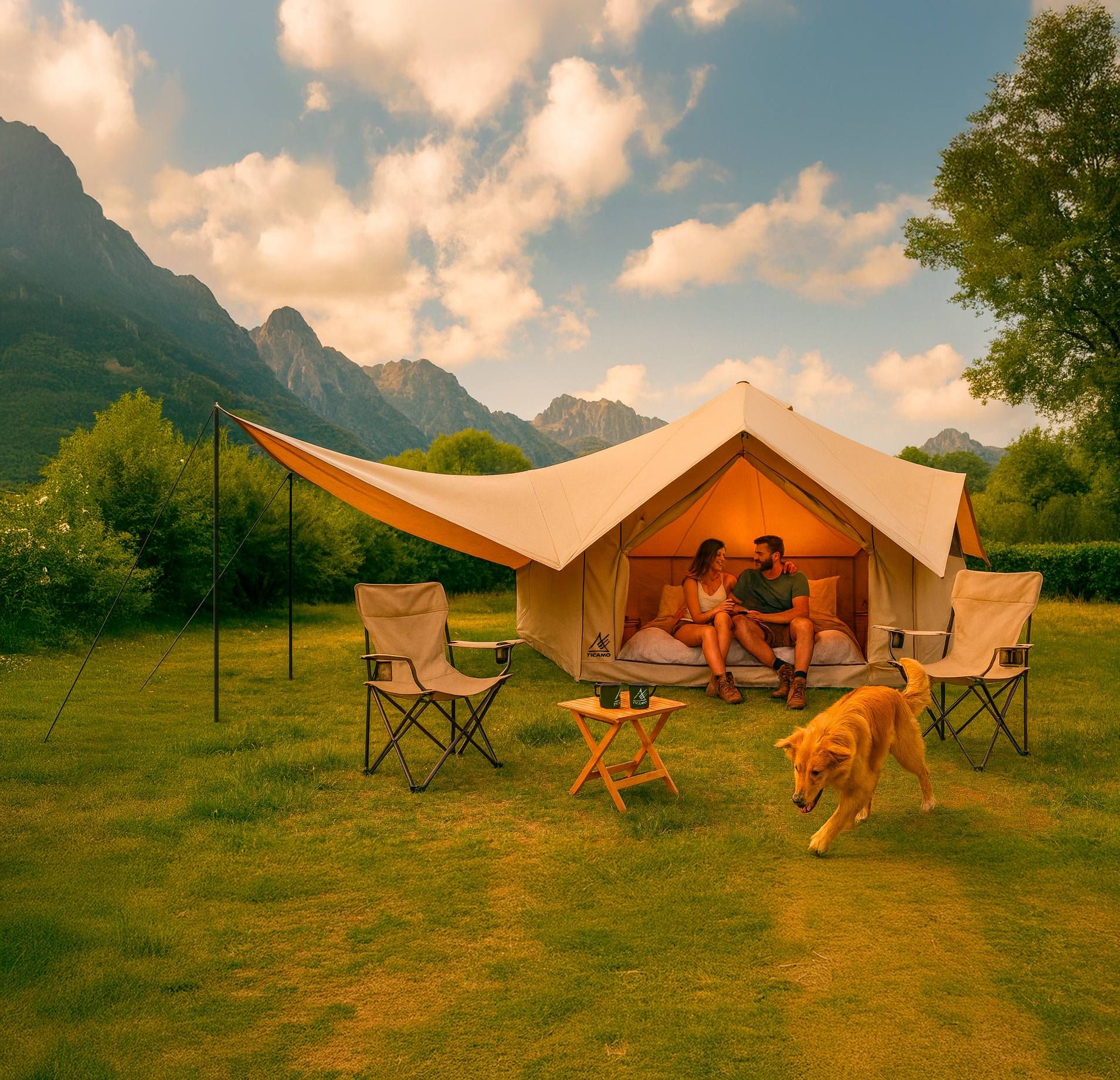 La tienda que redefine la "tipi" de una manera UNICA. Interior totalmente diáfano (sin mástil central), sin vientos exteriores para aprovechar la parcela de camping, estructura más reforzada y ventilación extra: 4 grandes mosquiteras con tapa + 3 respiraderos superiores. Lona TenCate de alta resistencia para exterior, toldo opcional y 3 configuraciones.